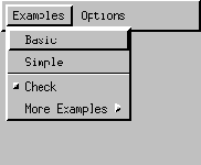 public class java.awt.MenuBar extends java.awt.MenuComponent (II-§1.31) implements java.awt.MenuContainer (II-§1.44) { // Constructors public MenuBar(); §1.30.1 // Methods public Menu add(Menu m); §1.30.2 public void addNotify(); §1.30.3 public int countMenus(); §1.30.4 public Menu getHelpMenu(); §1.30.5 public Menu getMenu(int i); §1.30.6 public void remove(int index); §1.30.7 public void remove(MenuComponent m); §1.30.8 public void removeNotify(); §1.30.9 public void setHelpMenu(Menu m); §1.30.10 }This class that encapsulates the platform's concept of a menu bar bound to a Frame.